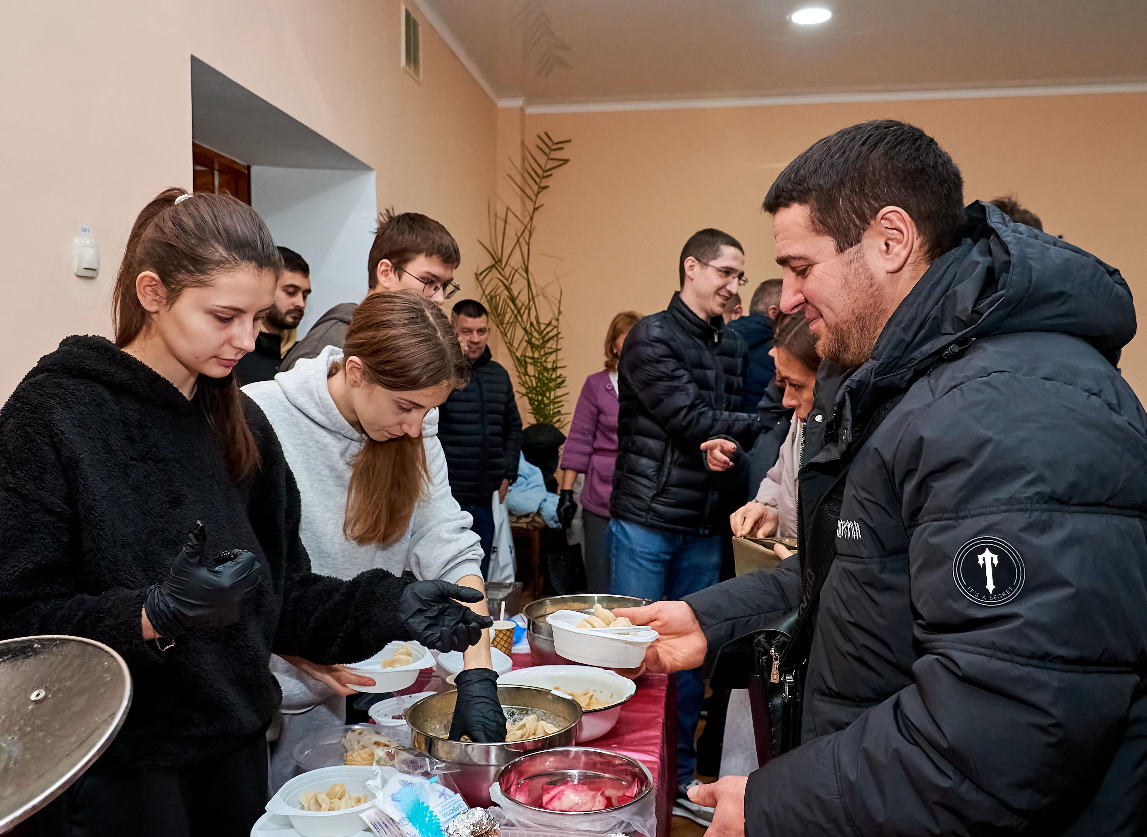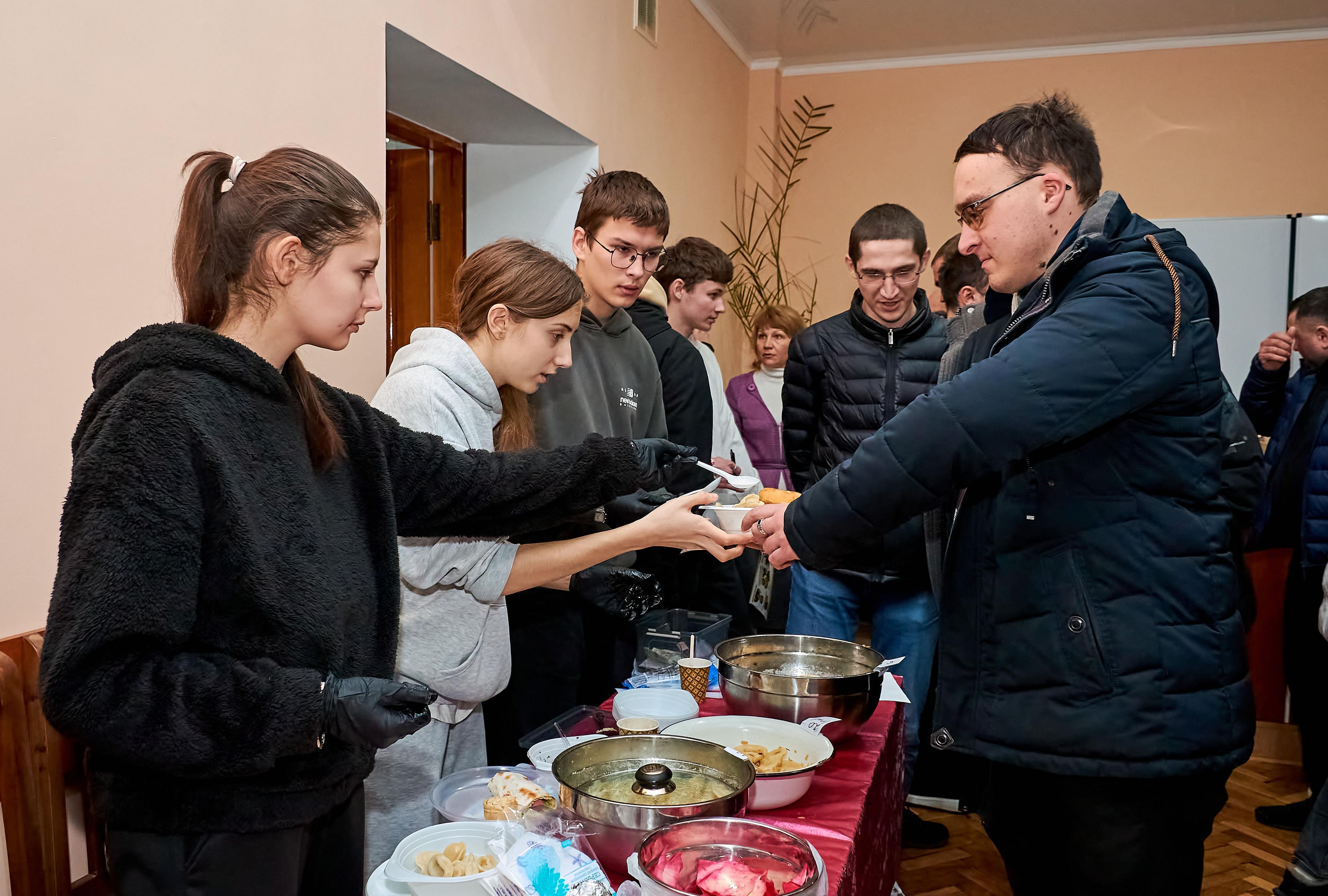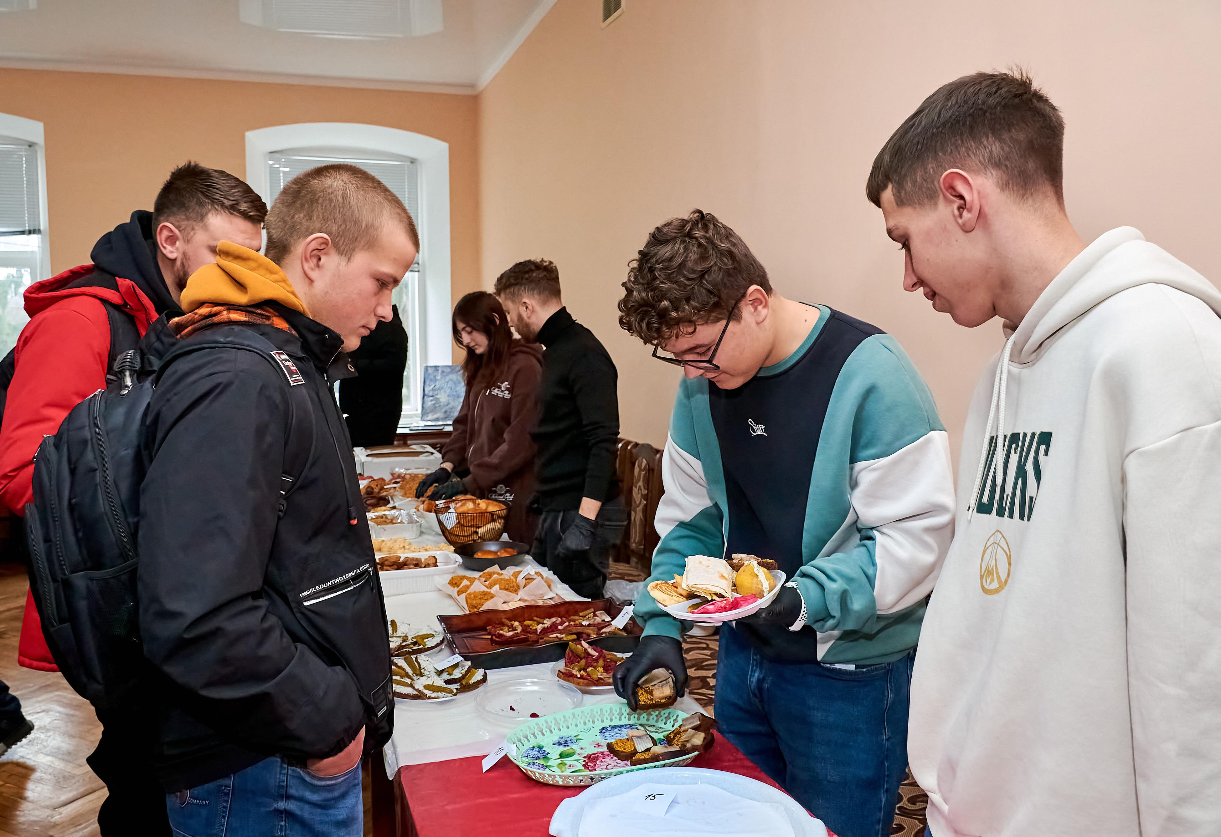 На ярмарку гості мали можливість скуштувати домашні смаколики. Голубці, вареники, деруни та інші українські страви, приготовлені власноруч студентами, викликали неабиякий інтерес та апетит у відвідувачів. Під керівництвом наставників і викладачів молодь охайно фасувала у пакунки торти, тістечка, еклери, пироги та рулети. Гості ярмарку із задоволенням смакували частування прямо біля столів зі стравами.