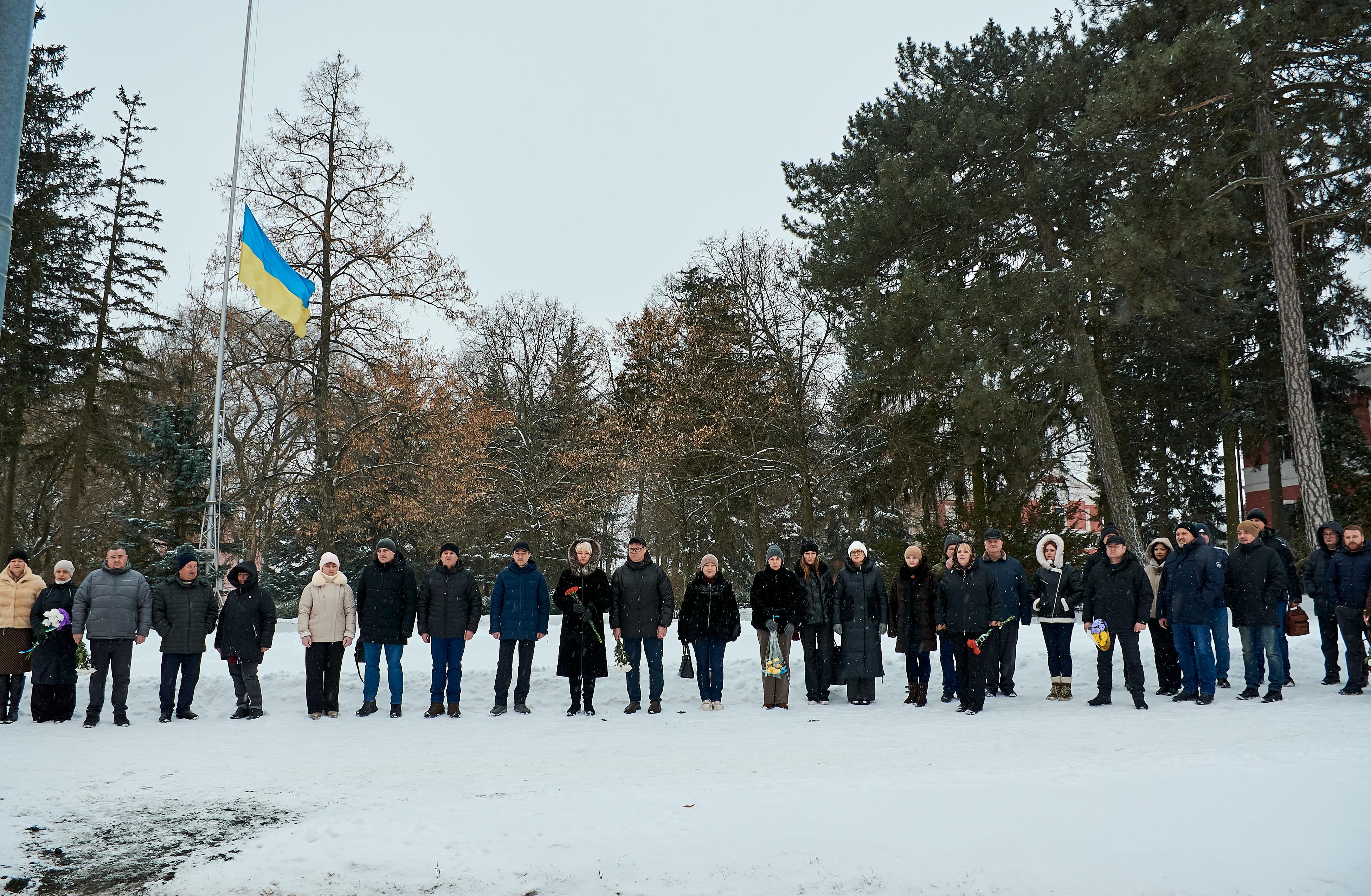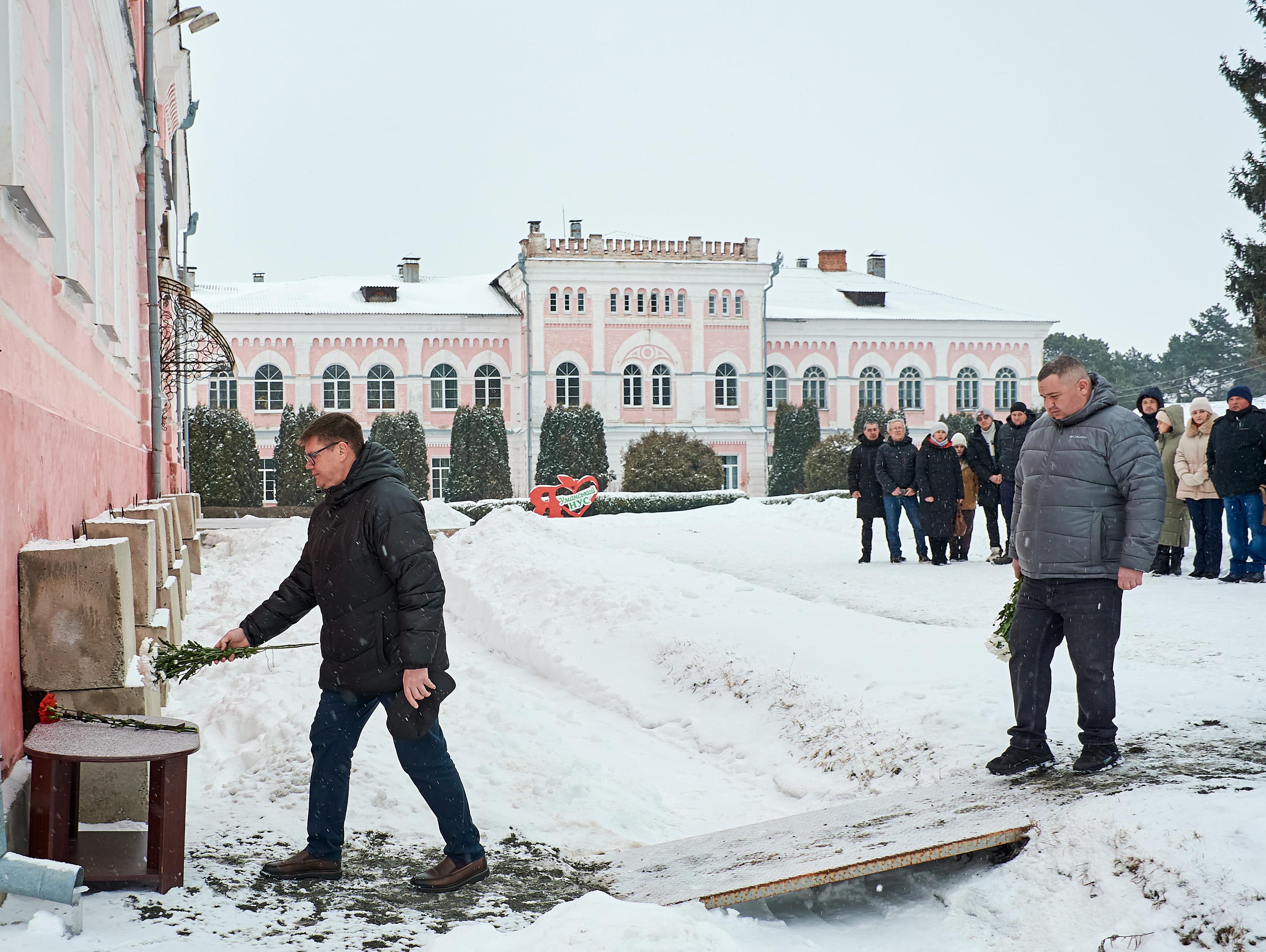 Сьогодні на Університетській площі колектив УНУ зібрався, щоб віддати шану Героям Небесної Сотні – учасникам Революція Гідності, які у 2013–2014 роках стали на захист європейського вибору та свободи України й заплатили за це найвищу ціну – власним життям. Саме 18–20 лютого 2014 року відбулися найтрагічніші та найкривавіші події протистоянь у центрі Києва, що назавжди змінили хід української історії. Ці дні стали символом незламності духу, громадянської мужності та жертовності заради майбутнього держави. На знак глибокої поваги та вдячності викладачі, студенти та співробітники університету поклали квіти до меморіальної дошки Віталія ВАСІЛЬЦОВА та вшанували пам’ять полеглих хвилиною мовчання.