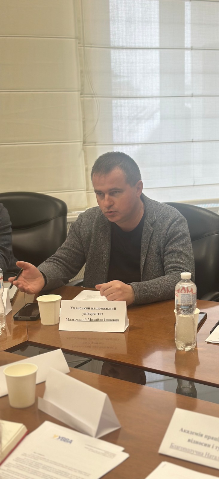 Цими днями відбулася робоча зустріч представників Уманського національного університету з керівництвом і науковою спільнотою Української виноградарсько-виноробної асоціації (УВВА). Заклад вищої освіти представили проректор з науково-педагогічної роботи, доктор економічних наук, професор Михайло МАЛЬОВАНИЙ; завідувач кафедри плодівництва та виноградарства, доктор сільськогосподарських наук, професор Роман ЯКОВЕНКО; декан інженерно-технологічного факультету, кандидат технічних наук, доцент Володимир НОВІКОВ.
