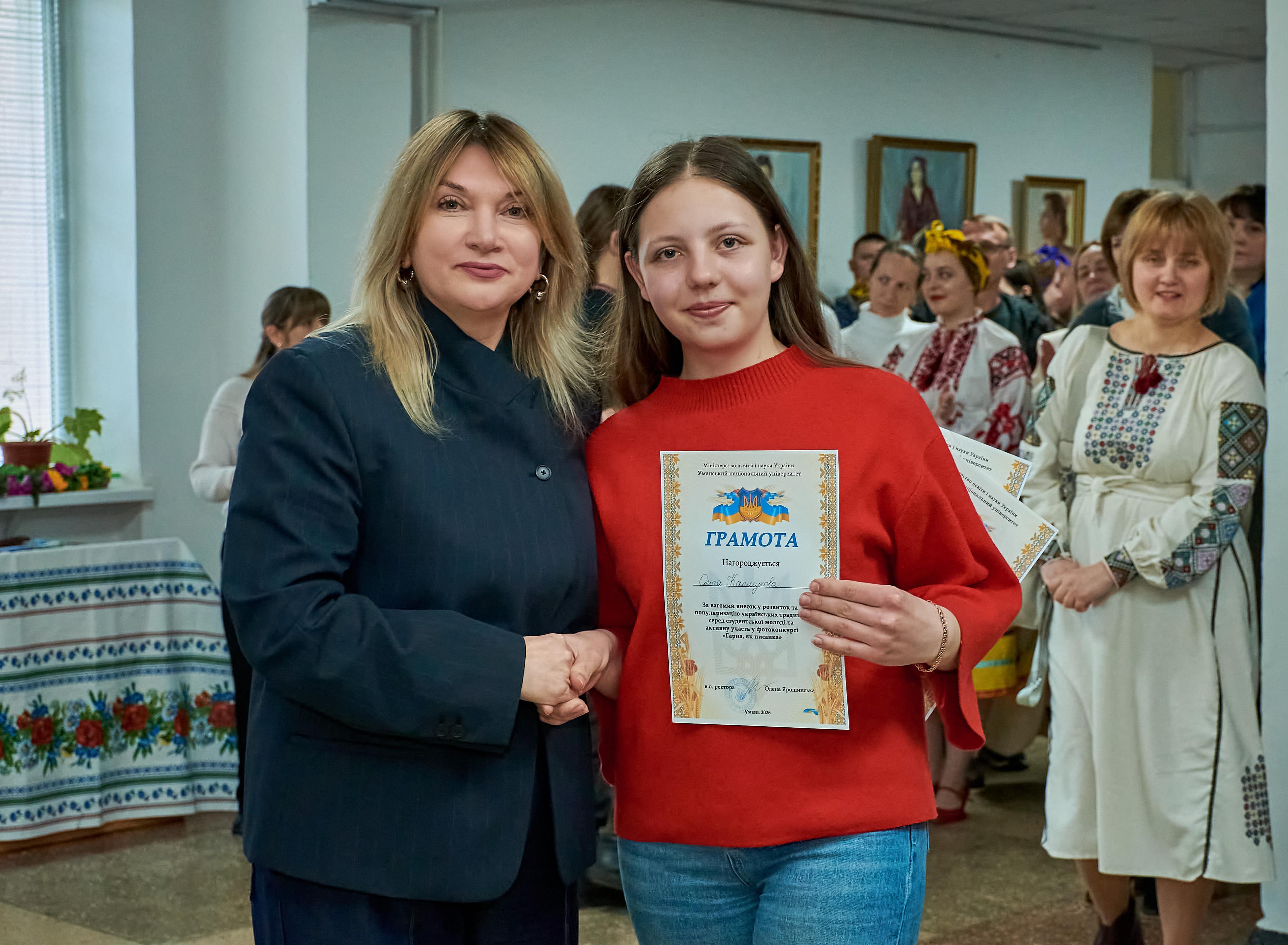 За вагомий внесок у розвиток і популяризацію українських традицій серед студентської молоді та активну участь у фотоконкурсі «Гарна, як писанка» грамотами були нагороджені: Ілля ТОПОЛЬ, Микола ІЛАРІОН, Ольга КАПШУКОВА, Денис ПОЛІЩУК, Анастасія КОДЖЕБАШ, Софія КОКОРІНА, Софія ОРЛОВСЬКА, Анастасія МІРОШНИЧЕНКО, Софія ЄВДЄЄВА, Анастасія ГОНЧАРУК, Єлизавета САЛТИКОВА, Альона ДУДКА, Світлана КОВАЛЬЧУК, Анна ПРОКОПЕНКО, Анна ПОЧЕРЕНЮК, Яна ТКАЧЕНКО та колектив кафедри фінансів, банківської справи та страхування.